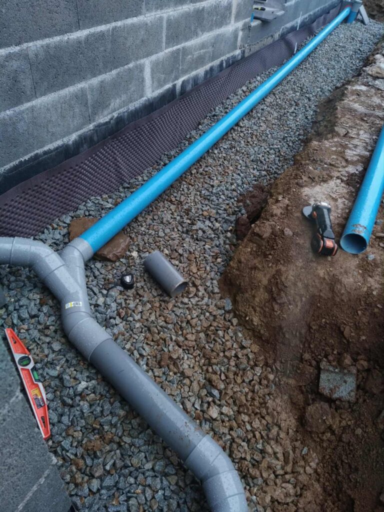 Nous mettons en place des systèmes d’évacuation efficaces pour éviter la stagnation des eaux de pluie, protéger les fondations et prolonger la durée de vie de vos sols.
